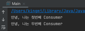Consumer<String> consumer2 = t -> System.out.println(t + "나는 두번째 Consumer");