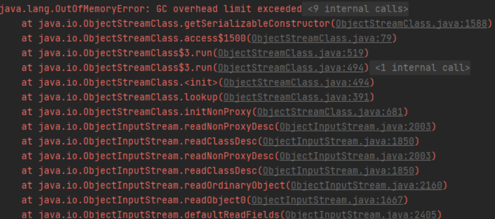 위 이미지같이 GC overhead limit exceeded 원인으로 OutOfMemoryError가 발생하고 있다. 잉..? 이런 에러는 살면서 처음보았다.